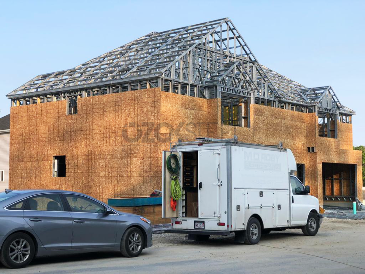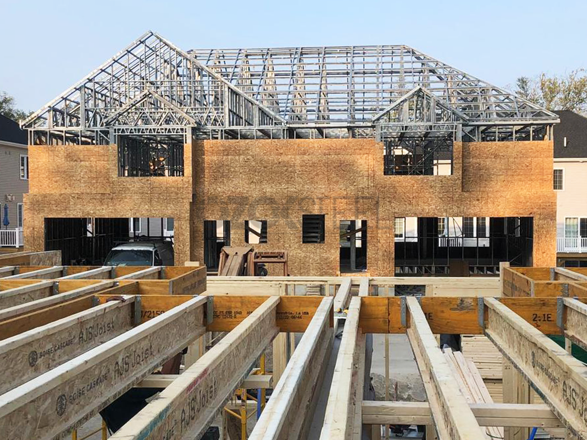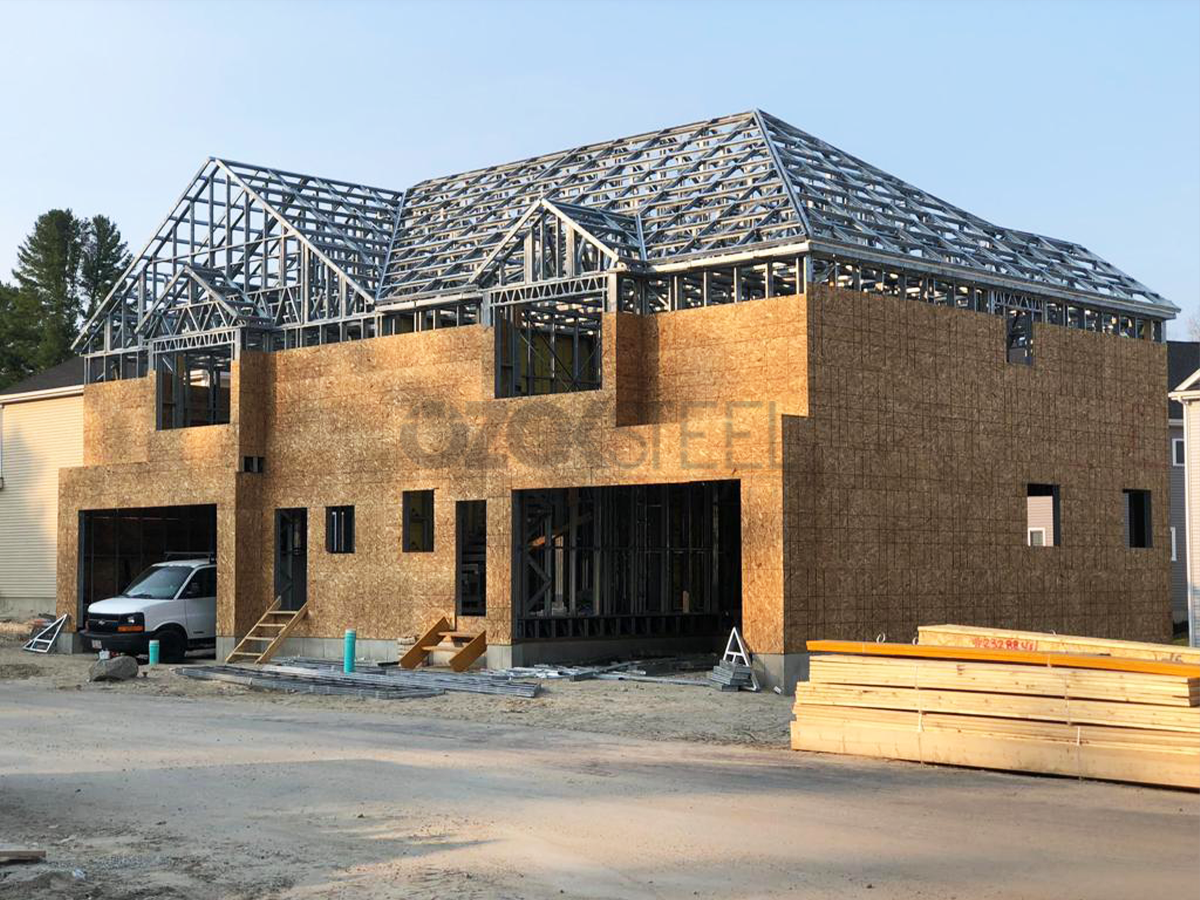 Wir haben die Fertigungs- und Bauprozesse von 2 Leichtstahlvillen, jeweils 428 m² groß und in den Vereinigten Staaten gelegen, erfolgreich abgeschlossen. Die Villen wurden mit einem Leichtstahlsystem gebaut und durch stabile Tragwerke unterstützt, wodurch sie eine langlebige und sichere Struktur bieten.