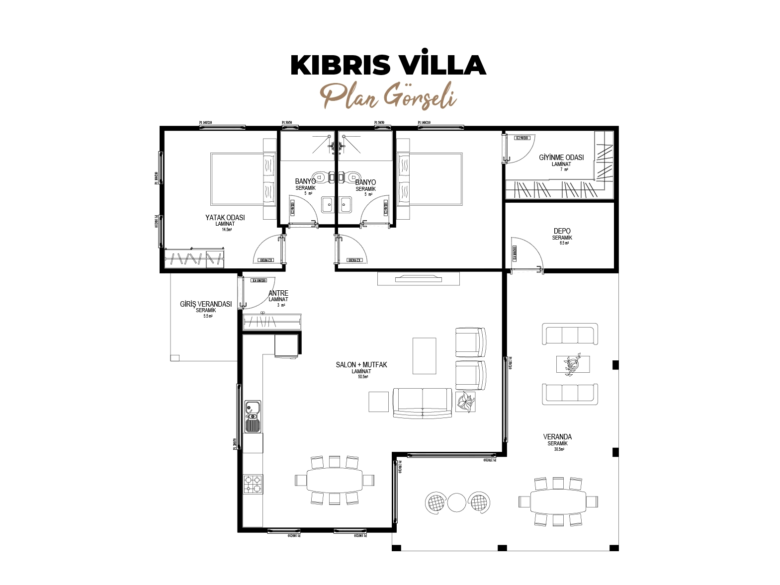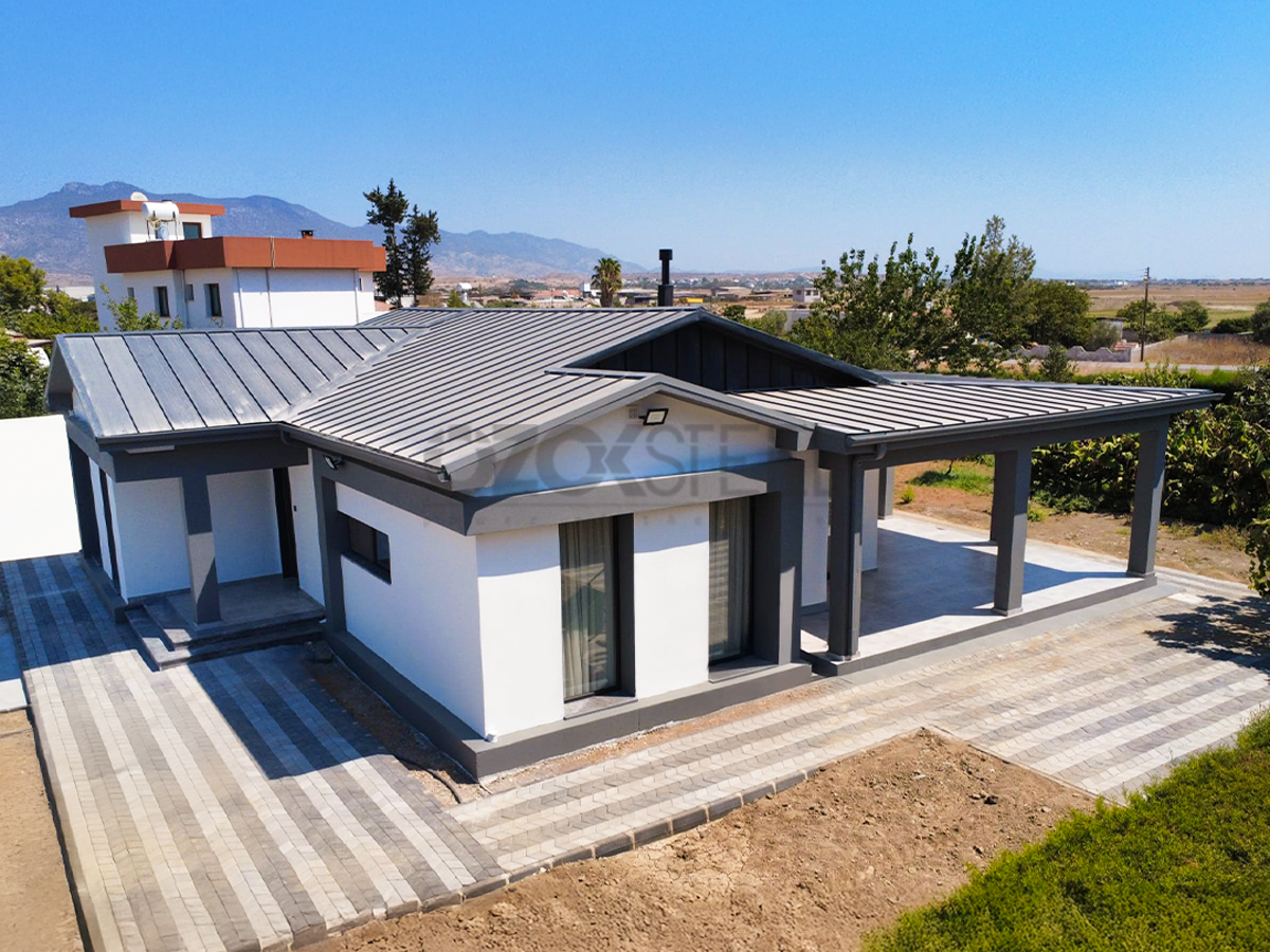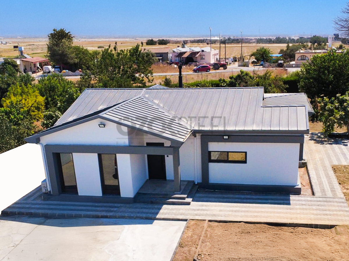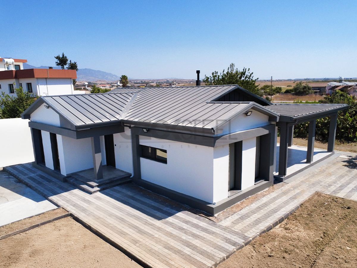 Als widerstandsfähige Lösung gegen die Hitze Zyperns und mögliche Erdbebenrisiken haben wir dieses 163 m² große, eingeschossige Projekt realisiert. In diesem Haus, dessen Bauprozess erfolgreich abgeschlossen wurde, haben wir sowohl den großzügigen Verandagenuss als auch das sichere Wohngefühl durch die Stahlkonstruktion in den Vordergrund gestellt.