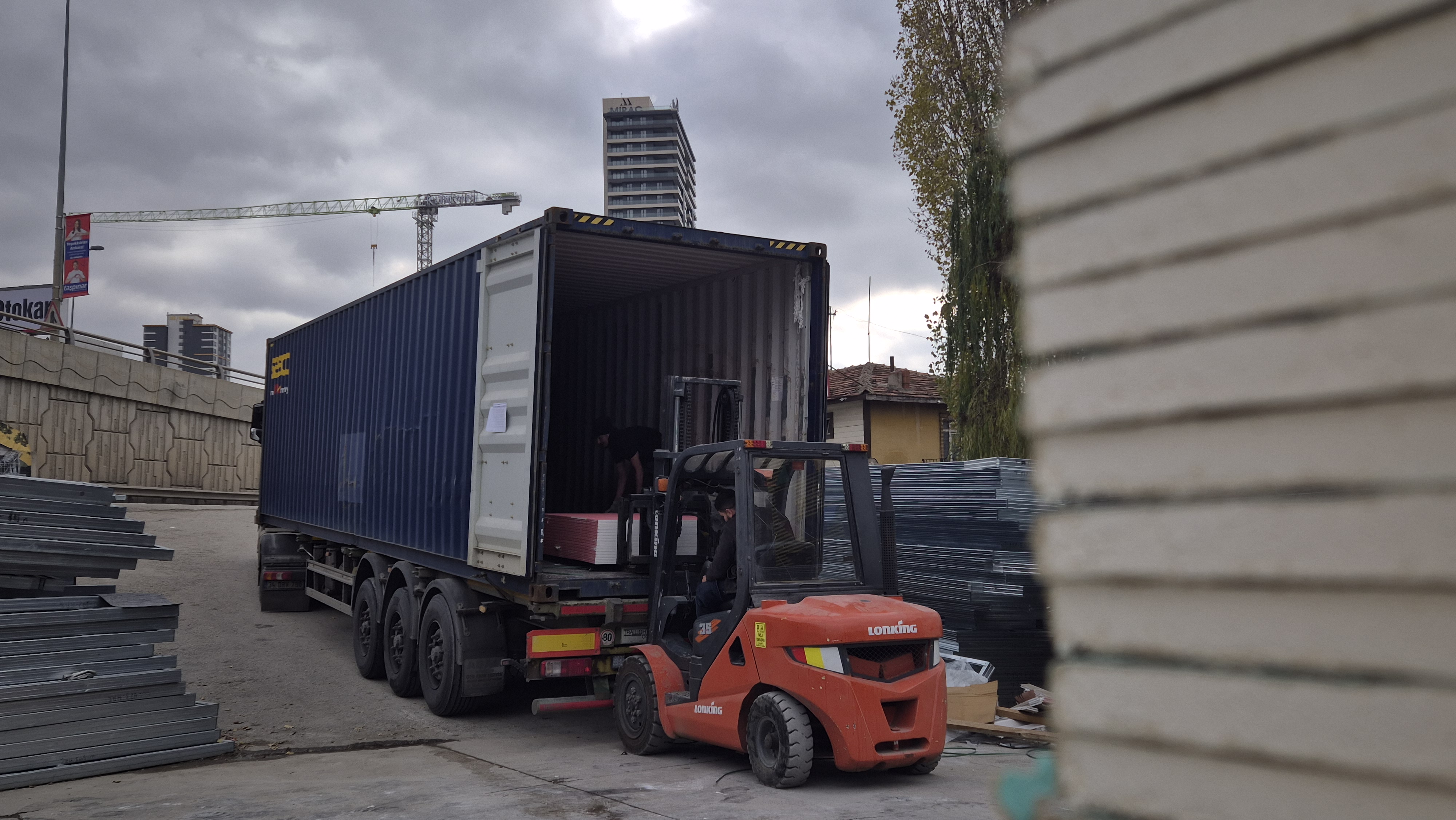 All load-bearing panels, wall modules, and steel construction elements produced for our 253 m² single-storey structure have been carefully packaged and dispatched.