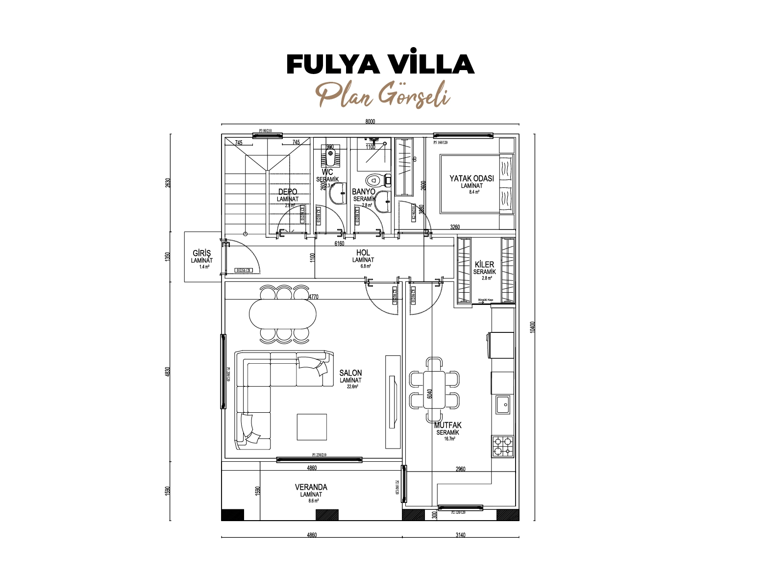 Fulya Villa is a light steel structure project with a total living area of 160 m², implemented in Kütahya.