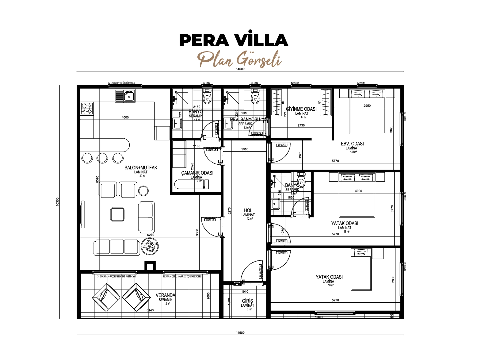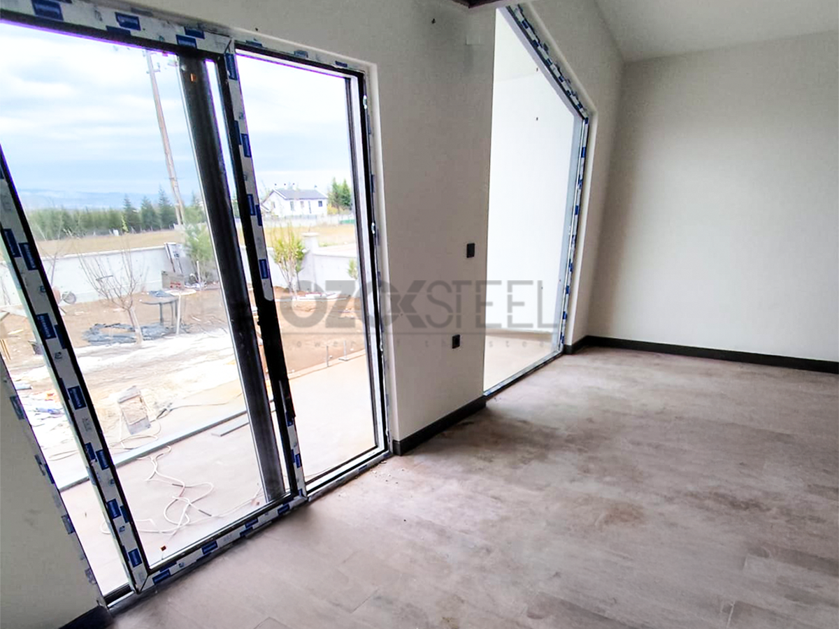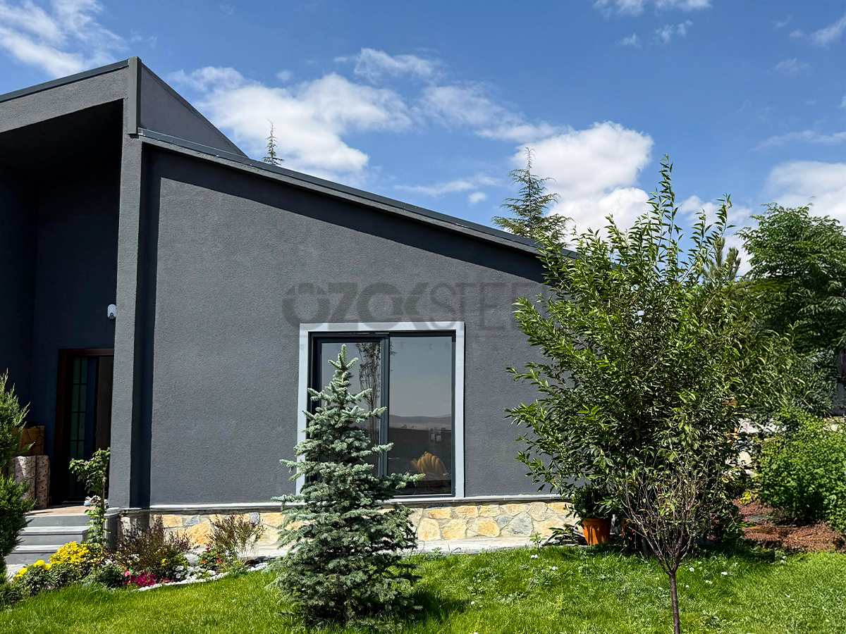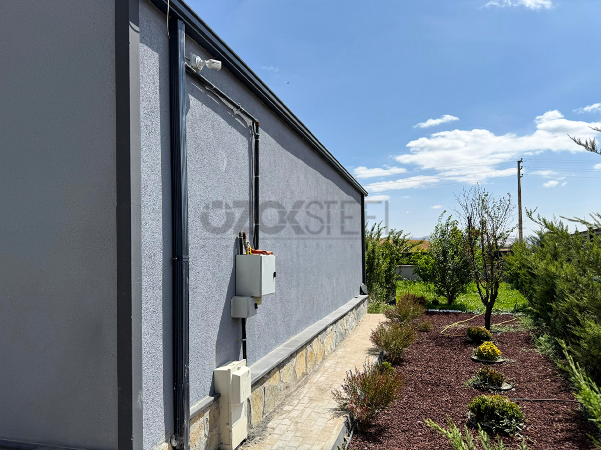 Pera Villa combines the comfort and aesthetics of modern living with the elegance of a triangular roof design. Its 150 m² single-story layout offers a spacious and functional living space. Thanks to its light steel construction, durability, safety, and long-lasting quality come together in perfect harmony.