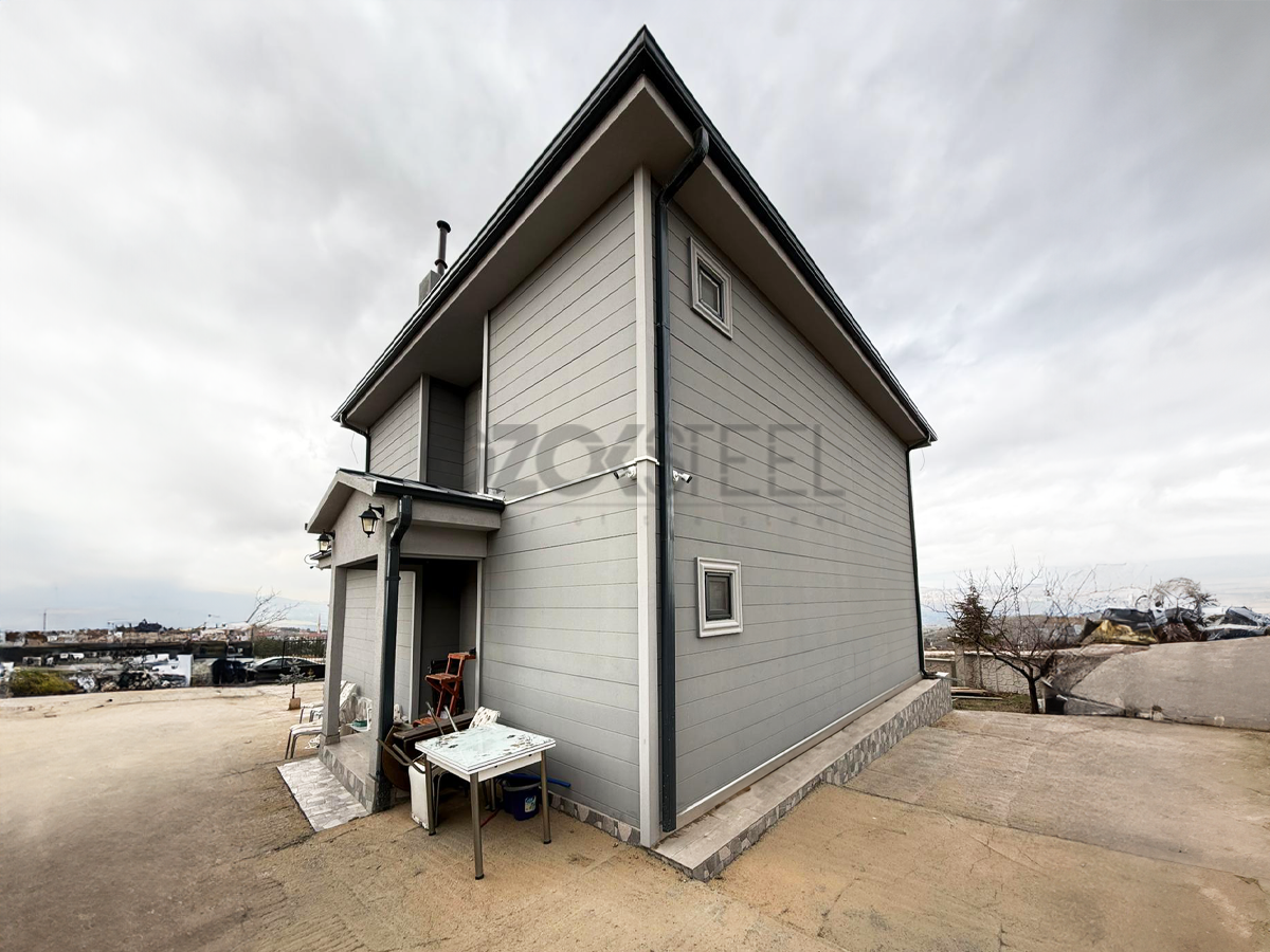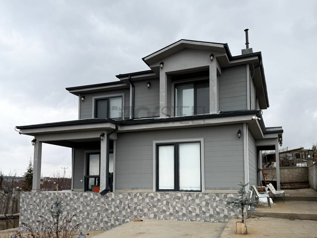 We have completed the construction of the 160 m2 two-story light gauge steel residence, designed to fully adapt to Ankara’s harsh climate conditions, using modern architecture and high engineering standards. By choosing grey tones and modern cladding details for the exterior, we provided the structure with both an aesthetic and a long-lasting character.